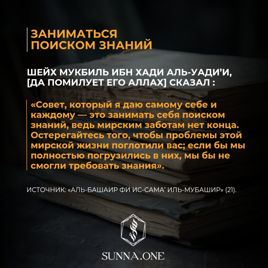 «Совет, который я даю самому себе и каждому — это занимать себя поиском знаний, ведь мирским заботам нет конца. Остерегайтесь того, чтобы проблемы …